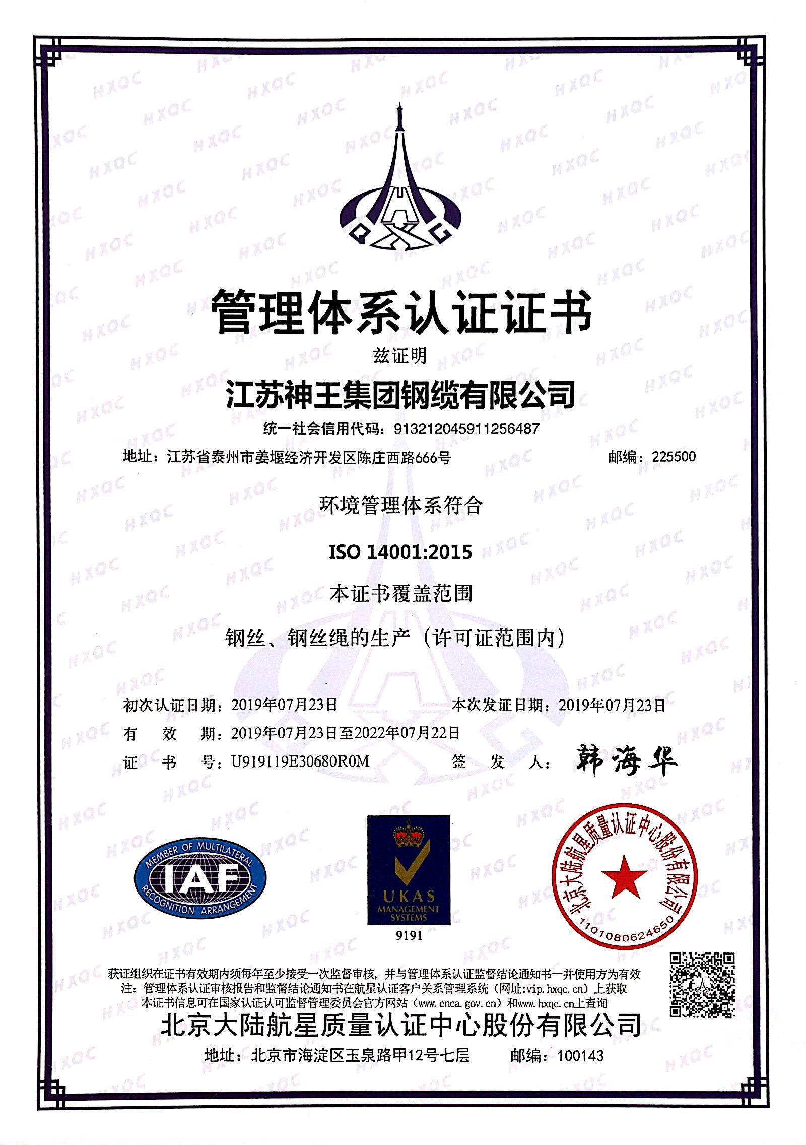 公司始终坚持“质量立本、创新发展、持续改进、服务顾客”的质量方针,充分吸收国内外先进的专业技术和管理方法,坚持以专业的团队,高效的流程,精益的管理,积极探索高科技产业发展的新路子,先后通过了ISO9001、IS014001、OHSAS18001管理体系认证,通过了MA、API等行业认证。公司为全国钢标准化委员会钢丝绳分技术委员会成员单位,先后参与了多项国家标准和行业标准的起草,获得发明和实用新型专利授权证书一百多项;获江苏省高新技术企业、江苏省民营科技企业、公司资信等级AAA级,国家级重合同守信用企业;“神王”商标2014年荣获“中国驰名商标”。