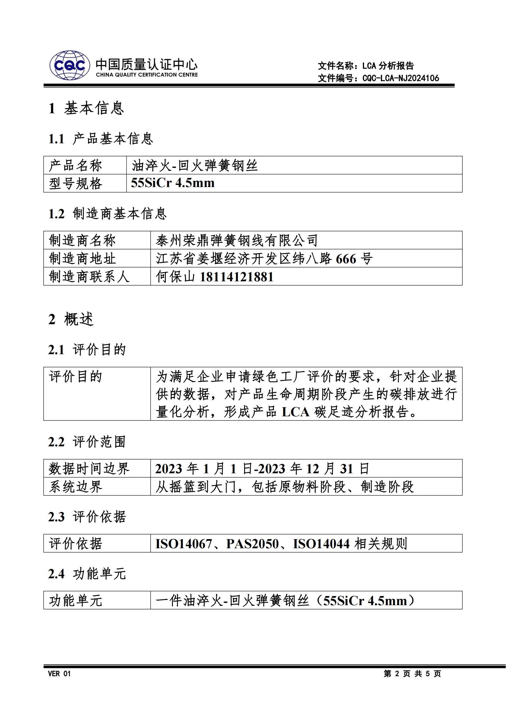 泰州荣鼎弹簧钢线有限公司LCA报告 2024-08-16 字号 返回首页 上一篇:泰州荣鼎弹簧钢线有限公司社会责任报告 ... 下一篇:泰州荣鼎弹簧钢线有限公司温室气体核查报告 ...